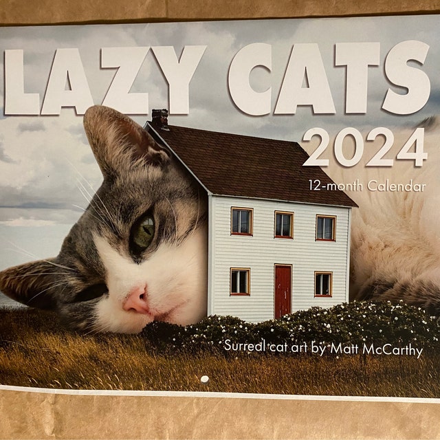 LAZY CAT CALENDAR 2024 Cat Wall Calendar Original Cat Art Etsy